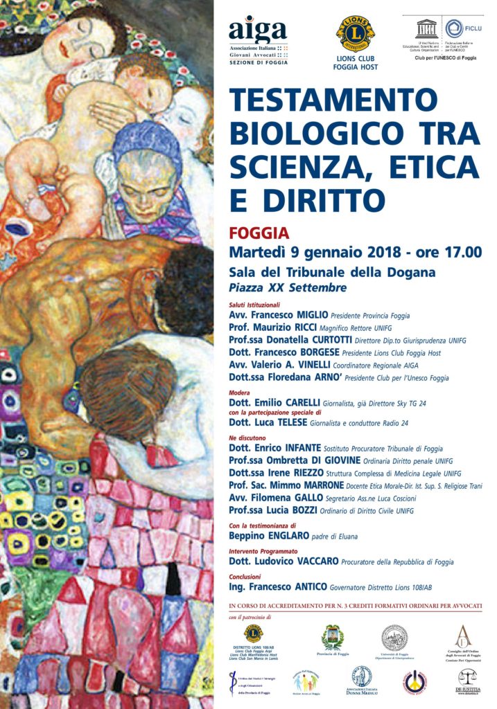 Filomena Gallo, segretario dell’Associazione Luca Coscioni, interverrà al convegno: “Testamento biologico tra scienza, etica e diritto”, che si terrà martedì 9 settembre dalle ore 17.00 presso la Sala del Tribunale della Dogana, Piazza XX Settembre a Foggia.