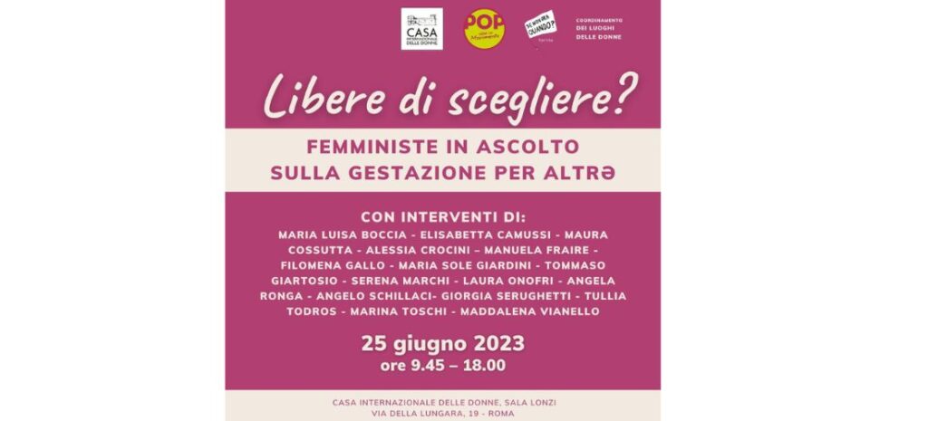 Filomena Gallo, Segretaria Nazionale dell’Associazione Luca Coscioni per la libertà di ricerca scientifica APS, interverrà nell’arco della mattinata all’iniziativa “Libere di scegliere? Femministe in ascolto sulla gestazione per altrǝ”, alla Casa Internazionale delle Donne.