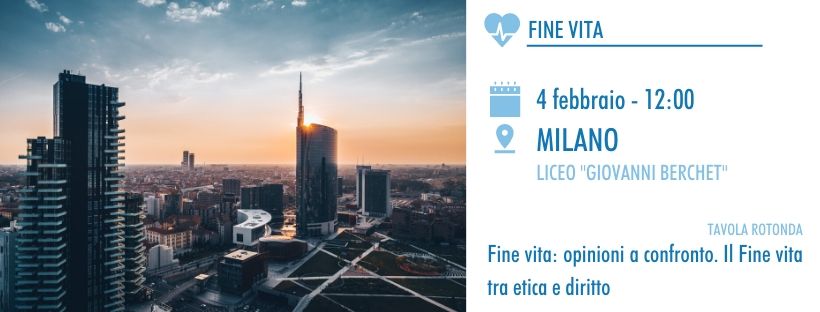 Si tratta di un confronto sul tema del Fine vita, sulla base di approcci, esperienze e posizioni diverse, al fine di instaurare un dibattito costruttivo tra etica e diritto. Francesca Maria Montemagno dialogherà con la dottoressa Benedetta Vimercati, dottore di ricerca di diritto costituzionale presso l’Università degli Studi di Milano.