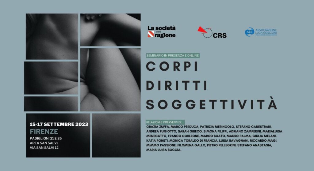 Francesca Re e Marco Perduca, entrambi membri di giunta di Associazione Luca Coscioni per la libertà di ricerca scientifica APS, intervengono come relatori al seminario annuale Corpi, Diritti, Soggettività, di Società della Ragione, in collaborazione con CRS Archivio Ingrao e con Associazione Luca Coscioni