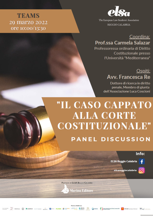L’avvocato Francesca Re, membro di Giunta dell’Associazione Luca Coscioni, partecipa al webinar Il Caso Cappato alla Corte costituzionale, organizzato dalla European Law Students’ Association di Reggio Calabria.