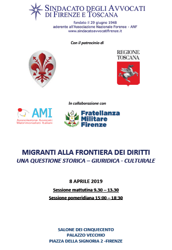 Gianni Baldini, membro di Giunta dell’Associazione Luca Coscioni, sarà a Firenze per il convegno Migranti alla frontiera dei Diritti. L’evento è organizzato dal Sindacato degli avvocati di Toscana, con il patrocinio della Regione Toscana e del Comune di Firenze, con la collaborazione di Associazione degli Avvocati Matrimonialisti Italiani e la Fratellanza militare di Firenze.