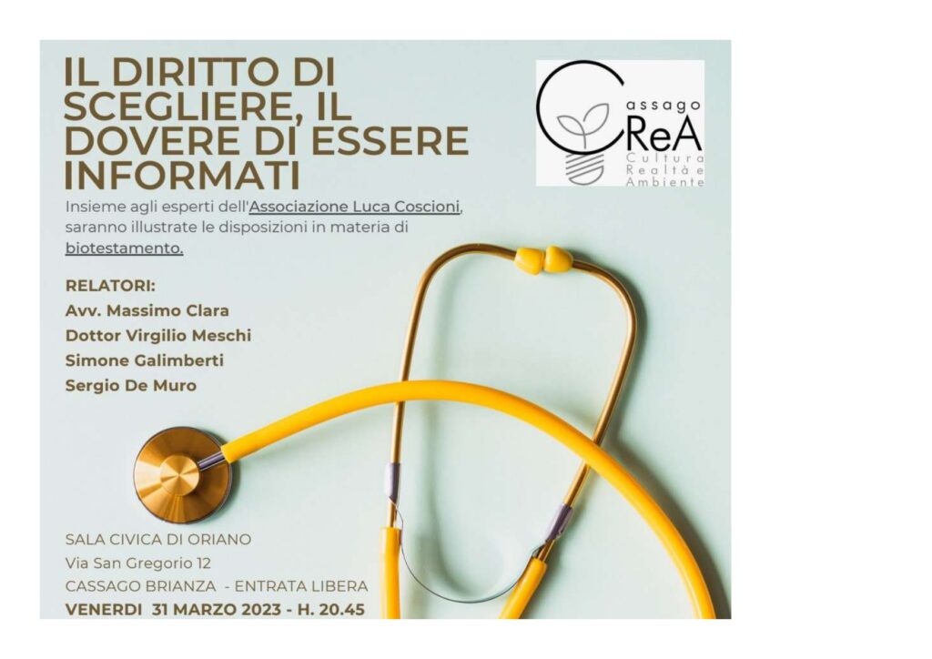 A Cassago Brianza, in provincia di Lecco, si terrà un’iniziativa informativa sulle Disposizioni Anticipate di Trattamento.