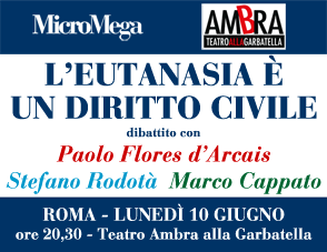 Un atto di libertà, una scelta individuale ma anche argomento che deve interessare la collettività nel suo complesso e la politica. In concomitanza del nuovo numero “Questione di vita e di morte” e della raccolta firmeper una legge di iniziativa popolare, la rivista MicroMega – in collaborazione con il Teatro Ambra alla Garbatella – organizza un dibattito sull’eutanasia lunedì 10 giugno ore 20,30 presso, appunto, il Teatro Ambra alla Garbatella (piazza Giovanni da Triora 15, Roma).