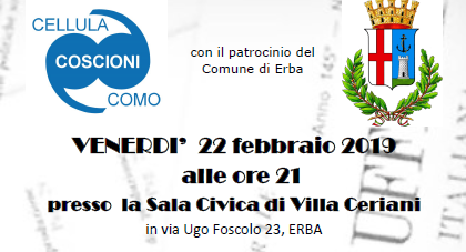 L’appuntamento è per venerdì 22 febbraio 2019, alle ore 21 presso la Sala Civica di Villa Ceriani ad Erba.