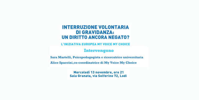 La Cellula Coscioni di Lodi organizza un dibattito su My Voice My Choice con Alice Spaccini, co-coordinatrice di my voice my choice Italia e Sara Martelli, psicopedagogista e ricercatrice universitaria.