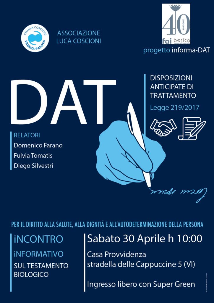 In occasione dei 40 anni di esistenza della Cooperativa vicentina Faiberica, la Cellula Coscioni di Vicenza-Padova organizza un incontro formativo sul testamento biologico.