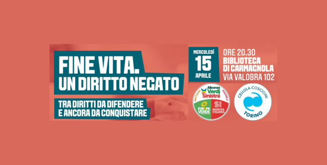 La Cellula Coscioni Torino, organizza a Carmagnola l’incontro pubblico “Fine vita. Un diritto negato, tra diritti da difendere e ancora da conquistare”, dedicato al tema dei diritti nel fine vita e delle libertà che ancora oggi, per molte persone, restano solo parzialmente riconosciute o non accessibili.