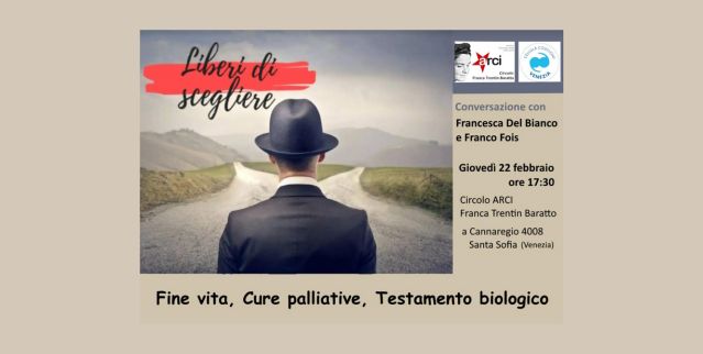 La Cellula Coscioni Venezia organizza un’iniziativa su DAT, Cure Palliative e Fine Vita, con Franco Fois e Francesca Del Bianco.