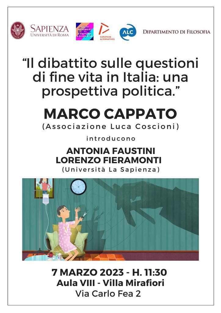 Marco Cappato all’Università La Sapienza di Roma per una conferenza sul fine vita