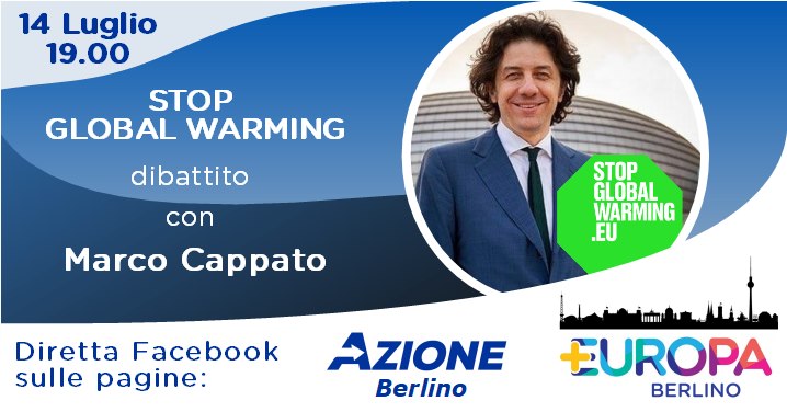 Il tesoriere dell’Associazione Luca Coscioni, Marco Cappato, parteciperà alla conferenza online dedicata a Stop Global Warming organizzata dai gruppi berlinesi di Azione! e Più Europa.