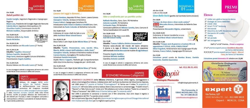 Marco Cappato, durante i giorni del Congresso dell’Associazione Luca Coscioni che si terrà a Torino, parteciperà alla Festa de L’Unità di Nichelino (TO) dalle 21.30 alle 22.30. Programma in allegato.