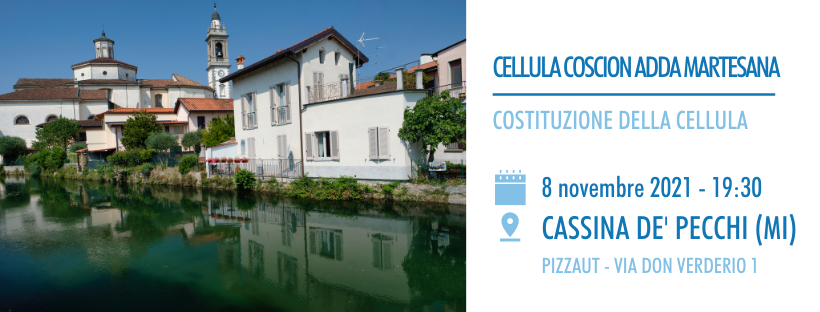 L’appuntamento è per lunedì 8 novembre 2021, alle ore 19:30, presso PiazzAut in via don Verderio 1 a Cassina de’ Pecchi, nella Città metropolitana di Milano.