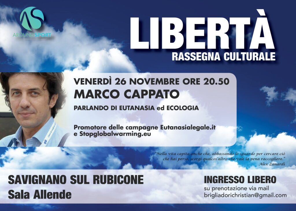 Il Tesoriere dell’Associazione Luca Coscioni, Marco Cappato, è a Savignano sul Rubicone, in provincia di Forlì-Cesena, per partecipare alla rassegna culturale Libertà, organizzata da Around Sport.