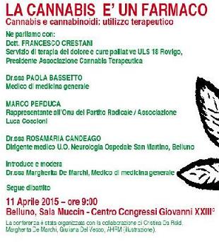 Sabato 11 aprile alle ore 9 presso la Sala Muccin del Centro Congressi Giovanni XXIII a Belluno, si tiene un dibattito su “Cannabis e cannabinoidi: utilizzo terapeutico”.