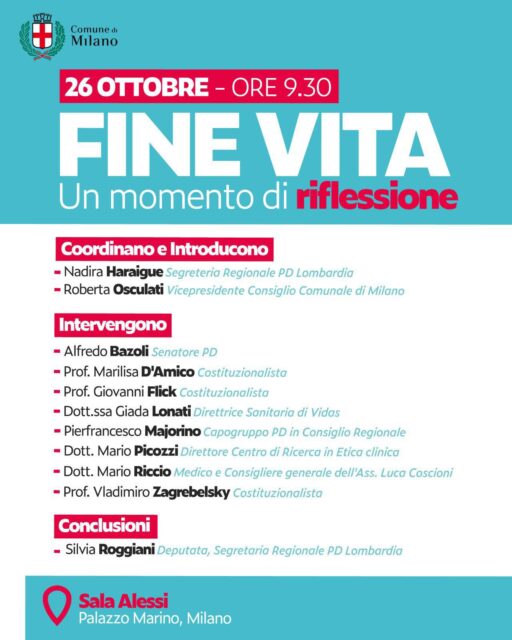 L’appuntamento è per sabato 26 ottobre,  dalle ore 9:30, presso la Sala Alessi di Palazzo Marino, in Piazza della scala, a Milano.