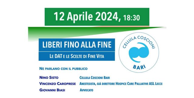 La Cellula Coscioni di Bari organizza un evento informativo DAT in occasione della mobilitazione nazionale DAT.