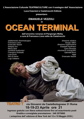 L’Associazione Culturale Teatri&Culture con il sostegno dell’Associazione Luca Coscioni e Castelvecchi Editore presentano Emanuele Vezzoli in Ocean Terminal, dall’omonimo romanzo di Piergiorgio Welby a cura di Francesco Lioce edito da Castelvecchi.