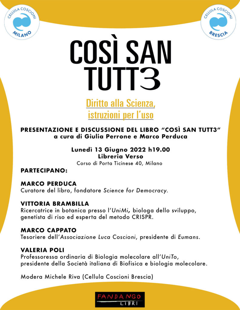 Le Cellule Coscioni di Milano e Brescia presentano il libro Così san tutt3.