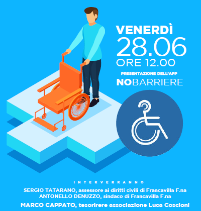 Venerdì 28 giugno 2019, alle ore 12, si svolgerà a Francavilla Fontana (Brindisi) la presentazione dell’App No Barriere. L’evento si svolgerà al Castello Imperiali, Sala del Belvedere.
