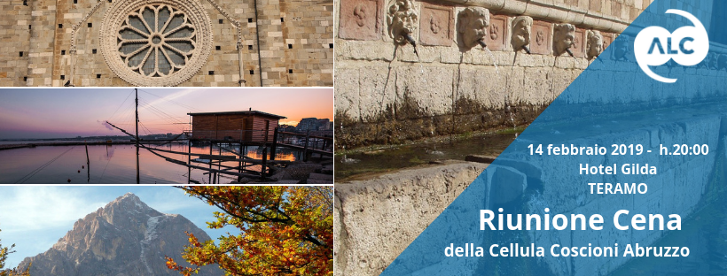 L’appuntamento è per giovedì 14 febbraio 2019, alle ore 20, presso l’Hotel Gilda di Teramo.
