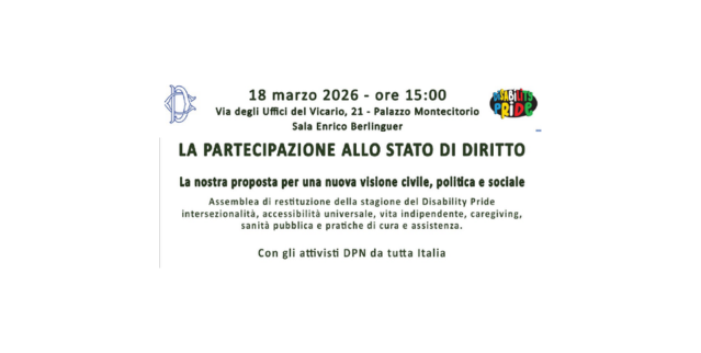 L’assemblea vedrà la partecipazione di attivisti del Disability Pride Network provenienti da tutta Italia e l’intervento dell’on. Marco Furfaro, in un confronto volto a rafforzare la partecipazione e il riconoscimento dei diritti delle persone con disabilità.