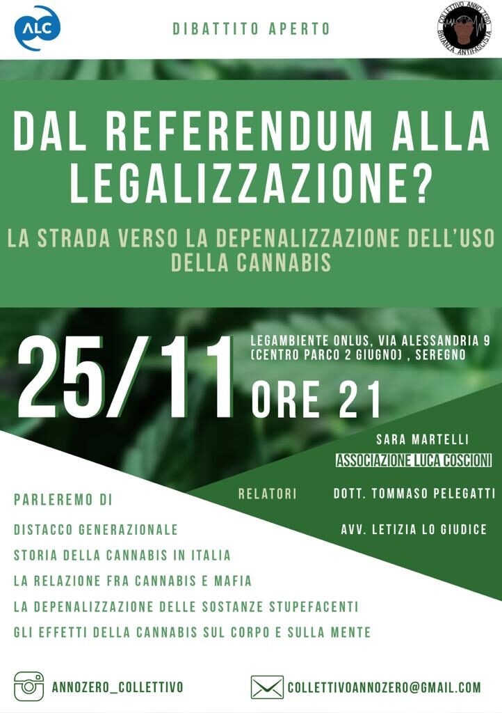 Il dibattito è l’occasione per parlare di vari aspetti connessi alla legalizzazione della cannabis: dal distacco generazionale alla storia della cannabis in Italia, dalla relazione fra cannabis e mafia, sino alla depenalizzazione delle sostanze stupefacenti sino agli effetti della cannabis sul corpo e sulla mente. Insieme a Sara Martelli, sono previsti gli interventi del dottor Tommaso Pelegatti e dell’avvocato Letizia Lo Giudice.