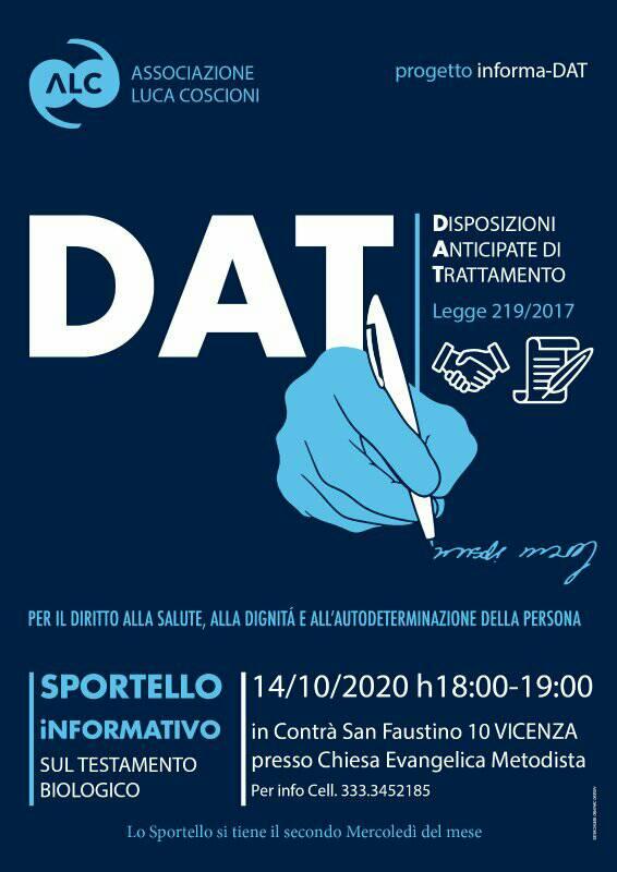 L’Associazione Luca Coscioni di Vicenza ha organizzato uno sportello informativo del Testamento biologico.