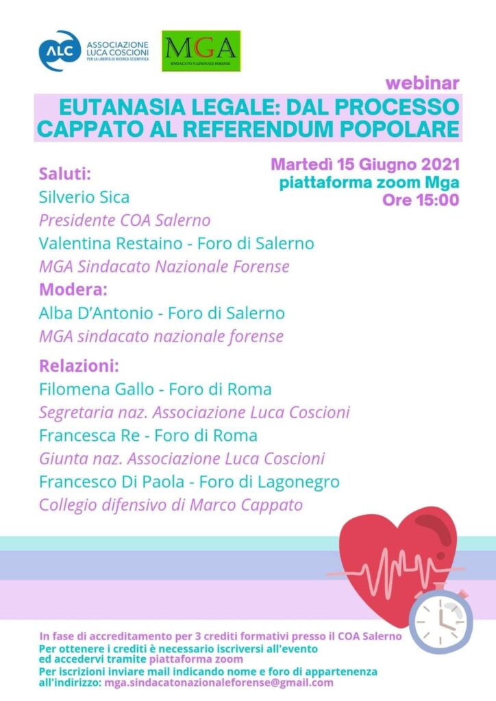 Webinar “Eutanasia Legale: dal processo Cappato al Referendum popolare”