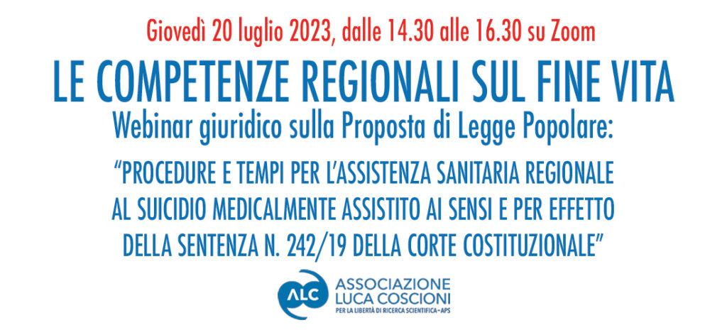 L’Associazione Luca Coscioni per la libertà di ricerca scientifica APS presenta il Webinar giuridico sulla Proposta di Legge Popolare