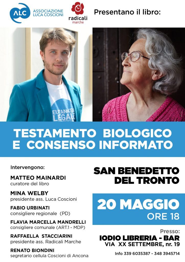 Matteo Mainardi, coordinatore della campagna Eutanasia Legale, presenterà il suo volume “Testamento biologico e consenso informato” edito da Giappichelli a San Benedetto del Tronto. L’evento è organizzato da Radicali Marche.