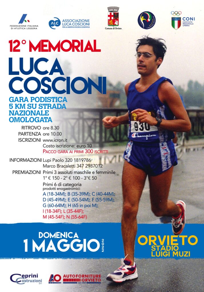 L’Associazione Luca Coscioni, in collaborazione con la Federazione italiana di Atletica leggera, l’Associazione Atletica Libertas Orvieto, il CONI ed il Comune di Orvieto organizza il XII Memorial Coscioni.
