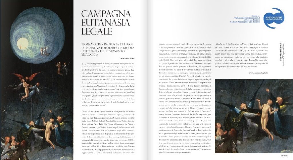 Quella per la legalizzazione dell’eutanasia è una lotta di tutti per tutti. Come scritto nel sito della campagna si diventa “volontario dei diritti civili” ed ad oggi sono tante le persone che hanno creato  una rete di partecipazione democratica, nonostante un parlamento ostile da troppo tempo alle iniziative popolari e referendarie.