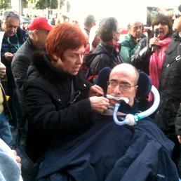 Lamanna ha elencato le proposte di emenamento alla legge di Stabilità: la messa a disposizione di 600 milioni di euro per il 2014 e di 700 milioni per il 2015 per il fondo per la non autosufficienza (il 50% del quale vincolato per i malati gravissimi), l’istituzione di un contributo caregiver e la possibilità per i disabili di scegliere tra la permanenza nella Rsa e le cure domiciliari. Tra i manifestanti c’é anche Michela Pennacchio, moglie di Raffaele, medico malato di Sla morto dopo l’ultimo incontro col Governo, il 23 ottobre sotto l’ingresso del ministero dell’Economia, in via XX Settembre.