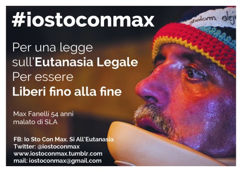 ‘Se sei malato terminale e vuoi morire, dimmelo”. E’ l’ultima iniziativa di Max Fanelli, il malato terminale di Sla di Senigallia che si batte per una legge sul fine vita insieme all’associazione ‘Io sto con Max’. Fanelli fa sapere che ha deciso di sostenere ‘l’associazione Luca Coscioni, e Marco Cappato, nella sua azione SOS Eutanasia. Offro le mie competenze e conoscenze sul tema del Fine Vita a tutti quei malati terminali qualora volessero recarsi in Svizzera per porre fine alle loro insolubili e dolorose problematiche psicofisiche. Per contattarmi inviatemi una e-mail a: iostoconmax@gmail.com o attraverso la mia pagina facebook Massimo Max Fanelli”. In un comunicato diffuso dall’associazione Fanelli precisa di essere ”consapevole delle conseguenze penali che ciò potrebbe comportarmi, per quello che ho appena avviato e che avvierò in futuro, a supporto di quei malati terminali che vogliono valutare la possibilità di recarsi in Svizzera per garantirsi quel diritto fondamentale di ogni essere vivente: il diritto all’autodeterminazione e alla Libertà di scelta. Un diritto che lo Stato italiano nega ai suoi cittadini”. Max Fanelli da anni porta avanti la sua battaglia. Ha interrotto le cure per protesta contro la mancata calendarizzazione della legge sul “Fine vita” e ha scritto al Presidente Mattarella. A fargli visita, nella sua abitazione marchigiana, sono arrivati la presidente della Camera Laura Boldrini e Stefano Rodotà. Inascoltata giace la possibilità di discutere della libertà di cura e del testamento biologico da anni in Parlamento.