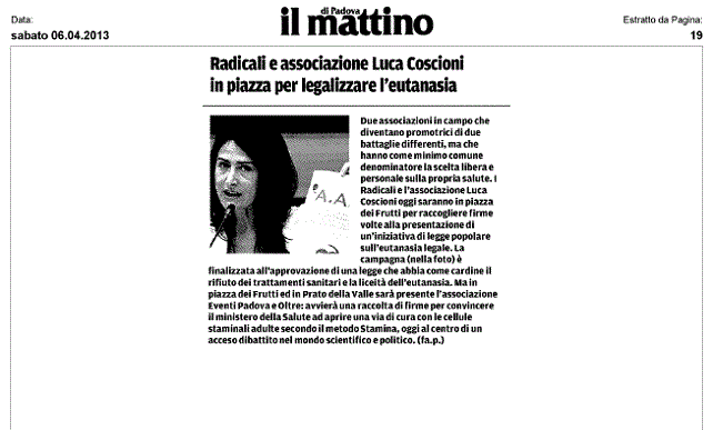 L’Associazione Luca Coscioni è una associazione no profit di promozione sociale. Tra le sue priorità vi sono l’affermazione delle libertà civili e i diritti umani, in particolare quello alla scienza, l’assistenza personale autogestita, l’abbattimento della barriere architettoniche, le scelte di fine vita, la legalizzazione dell’eutanasia, l’accesso ai cannabinoidi medici e il monitoraggio mondiale di leggi e politiche in materia di scienza e auto-determinazione.